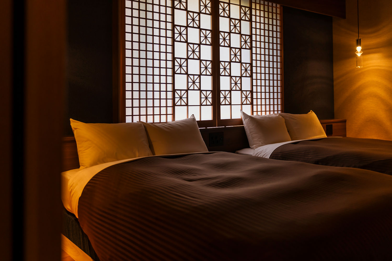 今回の改修では「令和6年度観光庁地域一体となった観光地の再生・観光産業の高付加価値化事業」を利用して客室のスケルトン改修を行った。水回りの移設を行い、当旅館の魅力である庭園を眺めながら温浴の時間を楽しめる付加価値を提供。