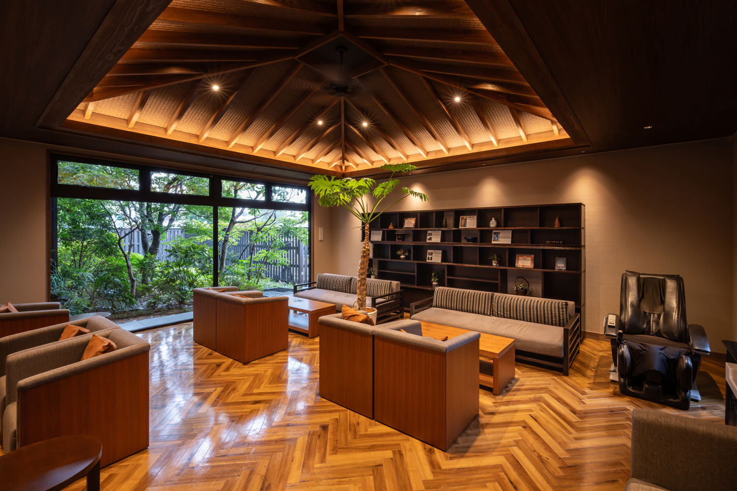 また、喫煙室にはマキストーブを設置し、炎のゆらめきと香りが漂う上質な時間を創出している。海と温泉、風と光が調和する「晴海」ならではのリゾート体験。ここに、別府に新たな基準を示す“至高の大浴場”が誕生した。