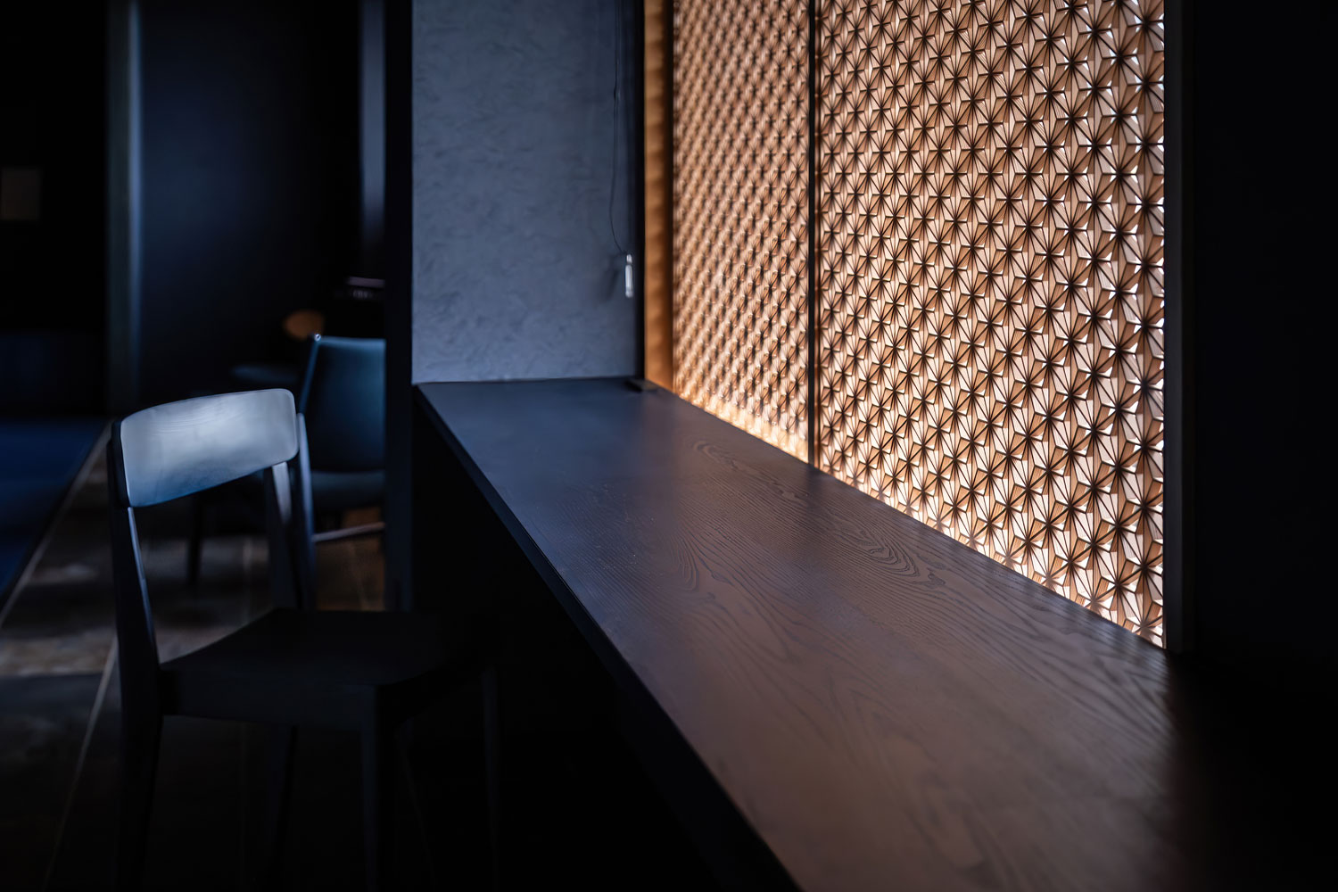 アーティストルームの特徴は、書道作品だけでなく、県の家具メーカー・レグナテック社が手がける「ARIAKE」家具との融合。万美氏の作品と調和し、客室全体の空間をアート作品へと昇華させている。
