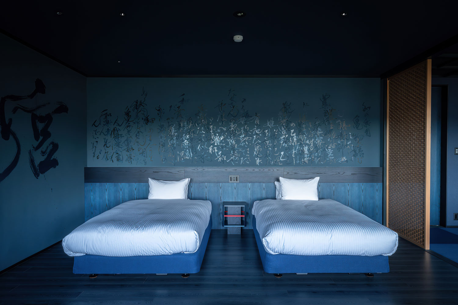 今回の客室改修は世界的に活躍する書道家・万美氏とコラボレーションし、新たな滞在体験を提供する「アーティストルーム」を作り上げた。